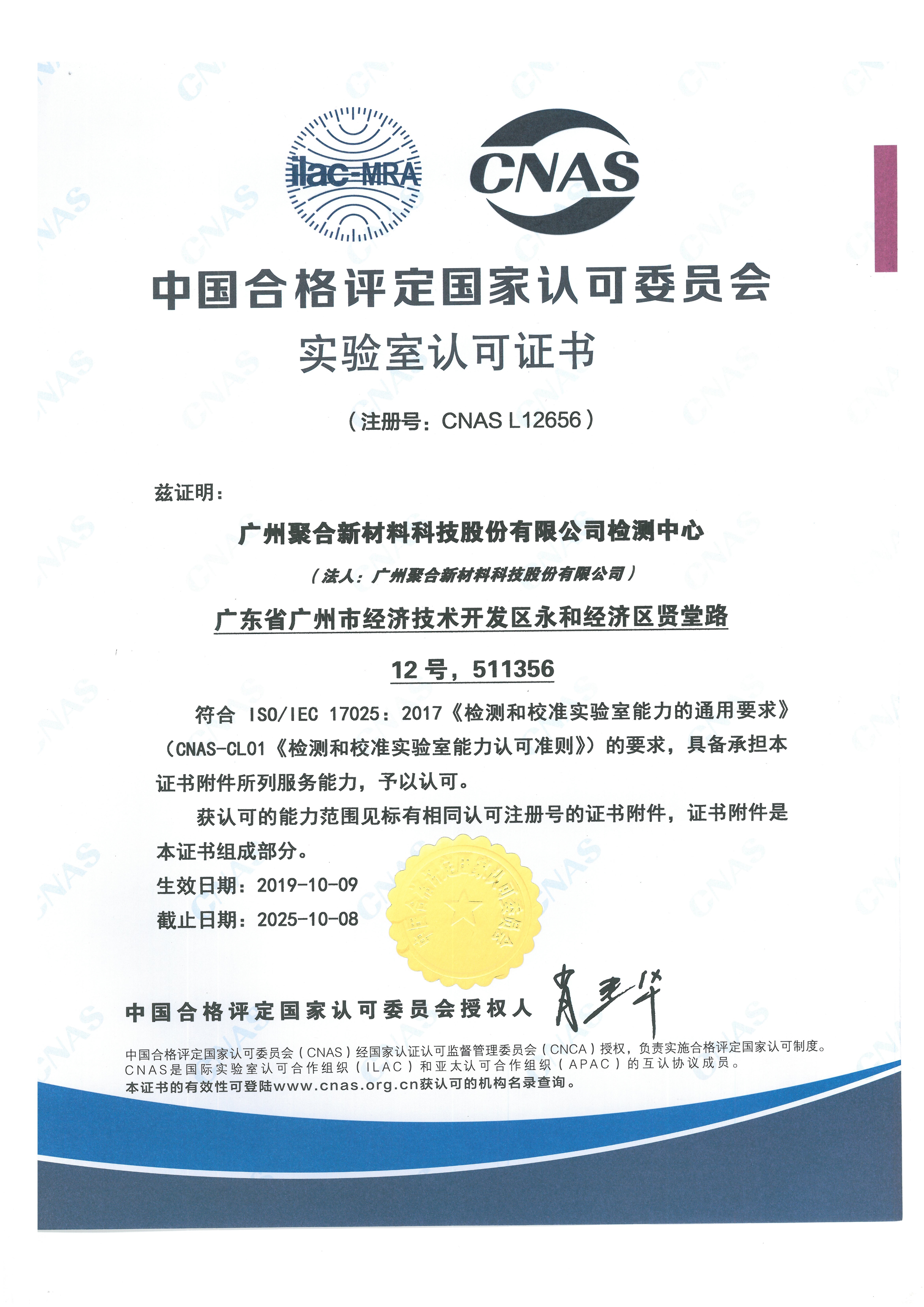 CNAS實驗室證書
